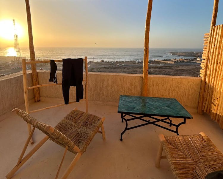 A dream location close to the bay but quiet, with a panoramic view terrace, varied, Moroccan and international healthy cuisine, yoga classes, wellness treatments, surf lessons, approved for disabled surfing and health surfing...