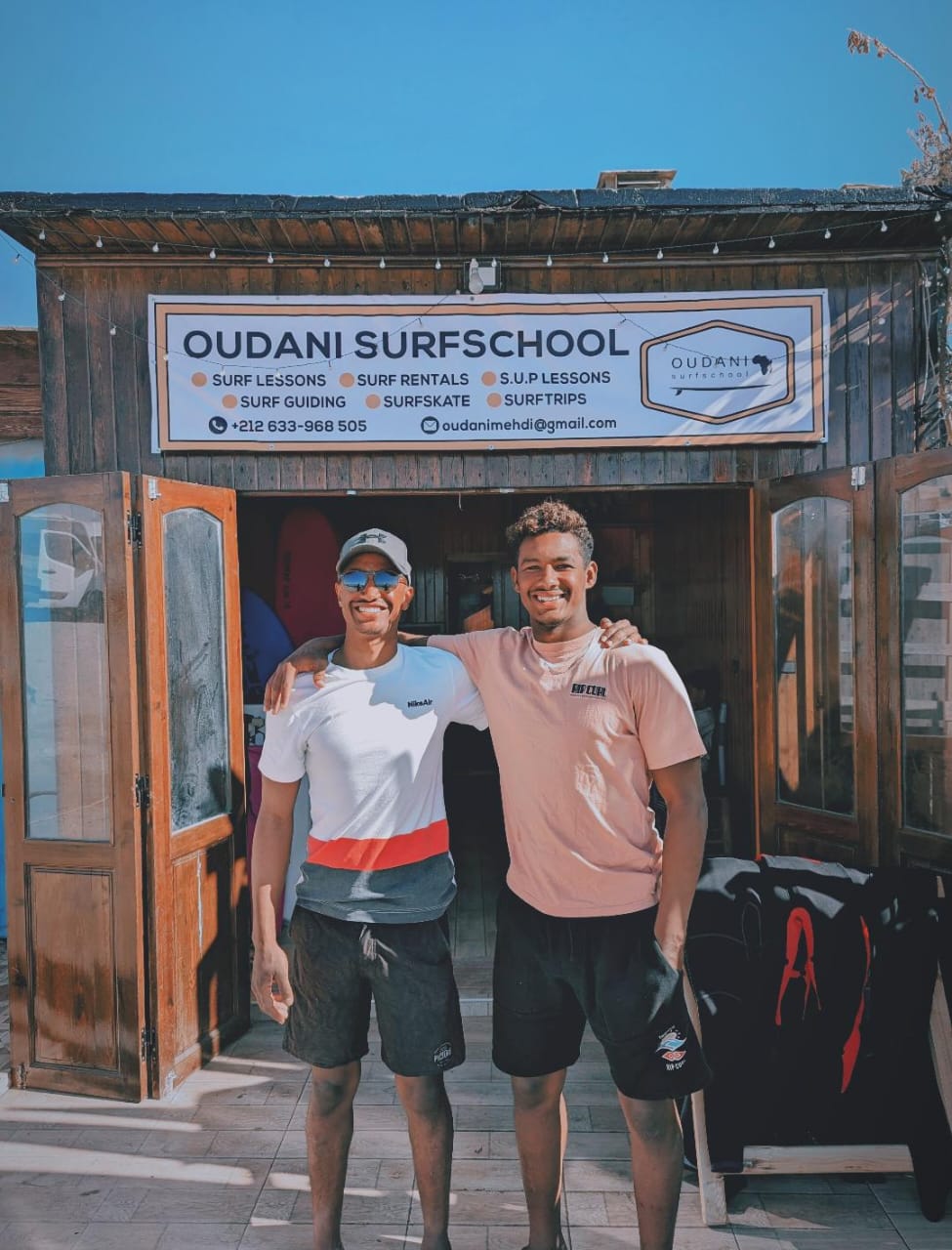 One of them is Mehdi Oudani, originally from Oualidia, Moroccan paddle surf champion today your host at Aman Surf, paddle and Yoga, surrounded by his team.